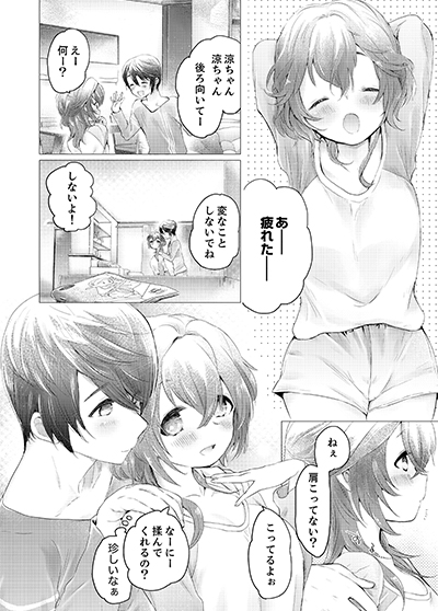 「そんなに、そこ…押したらだめぇ…」いつもより濡れている彼女のアソコ。マッサージで火照った体は、指で少し押しただけでも敏感に刺激が伝わってきて…――バンド活動をしている日向が思い起こすのはいつも仕事で疲れている彼女、涼のこと。その日の晩、同棲している彼女に「せめて、これ位は…」と思った日向は拙(つたな)い手つきながら彼女にマッサージをすることに。しかし、足元からふくらはぎ、ふとももと揉んでいく内に段々と彼女からは艶っぽい吐息が混じり始めてくる…。さらに「こっちからも…して?」と、あお向けになった彼女の言う通りふとももの付け根辺りを刺激すると、ビクッと気持ちよさそうに身体を震わせて……