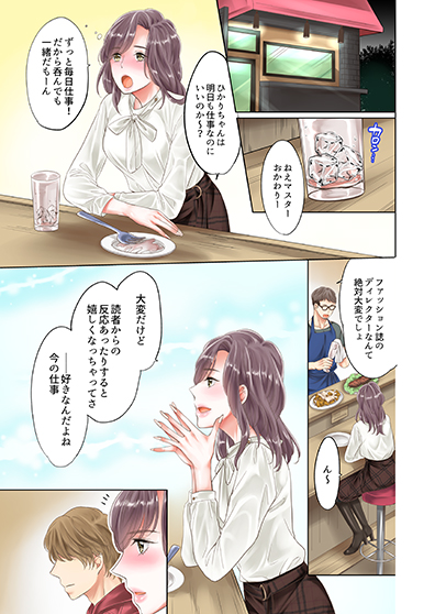 「久しぶりのセックス、いっぱい楽しんでよ」――ファッション誌のディレクターとして毎日仕事に明け暮れるひかり。行きつけの飲み屋でひとり飲みをしていると、隣の席に年下のイケメン・流星が。意気投合した二人はそのまま飲み続け…酔っ払ったひかりは、まさかの流星をお持ち帰りしてしまい――!?年下らしいカワイイ反応に油断していると、ゴツゴツとした男らしい指がひかりの秘所を優しく撫でまわす。思わぬジらしに、ひかりも我慢ができなくなり「もう…挿入れて…」と懇願する。ニヤリと怪しげな表情を浮かべた流星は、激しいピストンで何度も攻め続け…