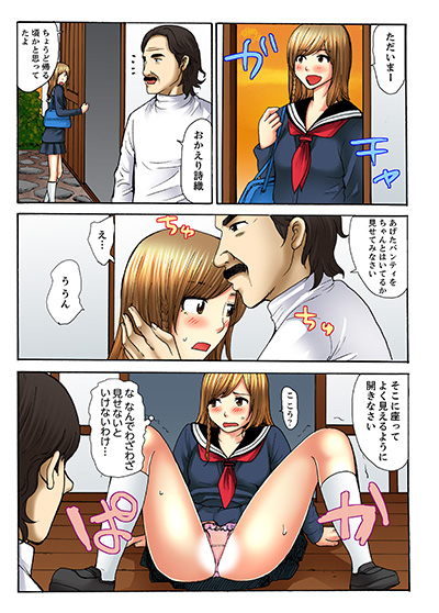 ――母が、有名な天才画家と再婚した。義父と暮らし始めて一ヶ月…母は幸せそうだし、義父もとても優しいが、JK娘・詩織には誰にも言えない悩みがあった――愛情表現が異常な義父は、娘の前でもセックスしまくり…欲情するや、食事中でも奥までガンガン突き上げ、ぐちょぐちょになった母のアソコを見せつける…。義父はとんでもないド変態だったのだ…!! そんなある日、詩織の友達が突然、家にやってきて…。「そうそう、指でクリ○リスも刺激して…」気づくと、絵のモデルをしていた友達がオナニーさせられ絶頂寸前…!? さらに、義父のイヤらしい手は詩織のアソコにも伸びてきて…!!