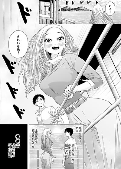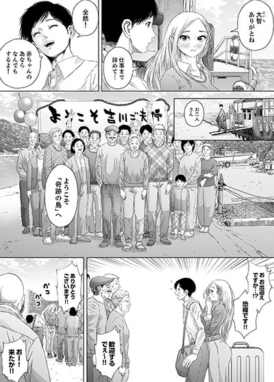 「こんなオジサン相手に…感じちゃうなんて…!」妊活を始めて2年…中々子どもが出来ない吉川夫妻に主治医からとある島への移住を紹介される。「子宝島」──なんでも不妊に悩む女性がその島に住む事によって子どもに恵まれるという。すがる思いで夫の大智は、妻の七瀬と共に島へと赴く決断をする。移住当日、島民から盛大な歓迎を受け、地域おこし協力隊の古雅による歓迎会に参加するも、酒に酔って七瀬は寝てしまい…。「最近の若造はチョロいのぉ」古雅は彼女の胸をはだけさせ、自身の逞しいイチモツを突き付けるが酩酊状態の七瀬は、大智と間違ってそれを咥え、それをダシに脅されてしまう。拒否権などなく既に濡れてるマ●コに挿入されて……やだっ…やめて…!中には出さないで…!!夫以外との赤ちゃんができちゃう!