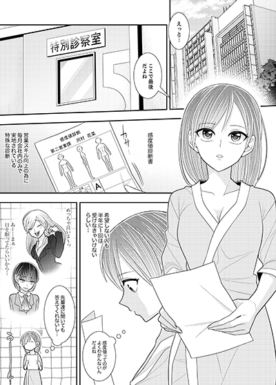 「先生の触る部分が…どんどん熱くなって…」会社で定期的に実施される健康診断を受ける花菜(はな)。そのプログラムの中にある「感度値診断」は営業スキル向上のため、絶対に診断しなければならなかった。着替えを終えて、施術ベッドで横になっていると周(しゅう)と名乗る担当の男が挨拶してくる。物腰柔らかく丁寧な振る舞いに安心する花菜だったが、男の触診は首から胸、胸からアソコへと徐々にエスカレートしてくる。「おや?こちらの感度値は著しくありませんね」そう言いながら、周のガチガチに硬くなったモノが花菜の入り口にあてがわれて…。これ以上診られたら…感度おかしくなっちゃうぅ!!