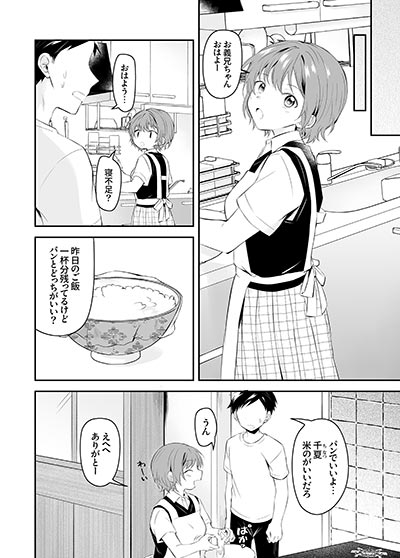 「お義兄ちゃんの、硬くてきもちいいっ…」――義妹の千夏がオナニーしているところを偶然目撃してしまった大学生の俊輔。オトナを感じさせるブラ、大きく膨らんだ胸…成長した義妹の淫靡な光景が頭から離れず、悶々とした俊輔が部屋でオナニーをしていると、今度はその姿を千夏に見られてしまう…! すると千夏は、服を脱ぎながら「私が手伝うよと…」と胸を揉ませてくる。千夏の大きなおっぱいの感触やビンビンに勃った乳首を弄んでいると、俊輔も千夏もお互いにアソコがビチャビチャに…。すると、千夏は「もっとくっついたら気持ちいいよ…?」と誘惑してきて…!? 超えてはいけない一線を越える義妹との禁断背徳セックス!