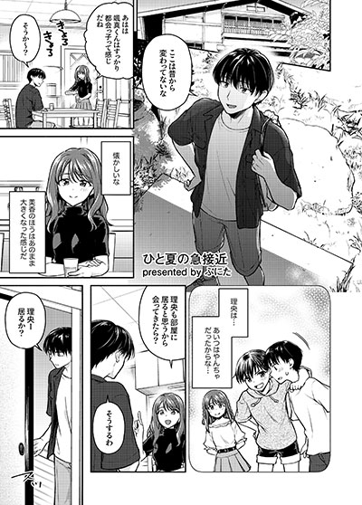 「好きなように…動いて…?」――幼なじみ・理央の家に久々に顔を出した颯真。部屋に入ると理央は着替え中で、うっかり鉢合わせ… すると理央の姉・美香が部屋に向かってくる足音が聞こえ、とっさに押し入れに隠れるのだが、成長した理央の身体に密着していると颯真のア●コは大きくなってしまう。それを見た理央は「手でシてあげよっか?」と言ってきて…!? 大好きな幼なじみの手の感触や、こもる吐息に我慢できるはずもなく、そのままヌルヌルの理央の秘所に挿入してしまい…!?(ひと夏の急接近/ぷにた)幼なじみ、人妻、同級生など、多種多様なヒロインたちの密室での痴態が見放題の珠玉のアンソロジー。