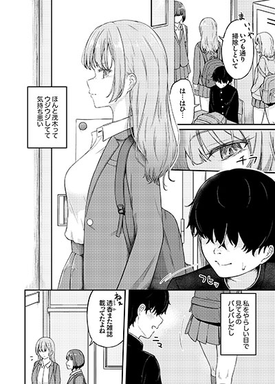 「データ消してほしかったらさ…じっとしててね」――クラスの一軍ギャルでモデルもしている透香。ある日、学校内で彼氏のアソコをフェラしていたところを、いつもいじめている陰キャの茂木に撮られてしまう…! 透香は茂木に呼び出されて、データを消してほしければ身体で支払うよう脅される…。最初は我慢するも、ねっとりとした舌遣いで乳首やアソコを舐められ感じてしまう透香…。それでも茂木の辱めは終わらず、ついには硬く大きくなったアレを挿入してきて…!? 「ナカに射精すのだけは絶対だめ…っ」